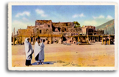 Anasazi pueblos decay along the mountain slope.